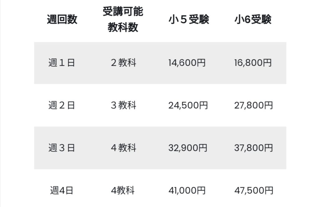小学生・中学受験生 10,000円 中学生 15,000円 高校生18,000円 (高校生コースは直接お問い合わせください。)