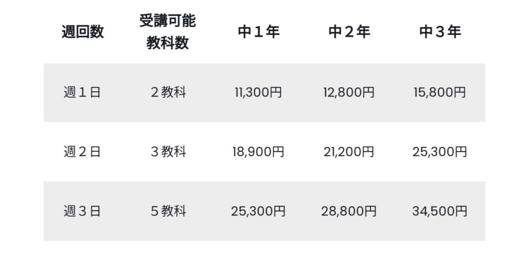 中学生はPM7:00~10:00の間で何時間受講しても費用は変わりません。